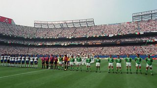 The Republic of Ireland team take on Italy at the FIFA World Cup in the USA in 1994.
