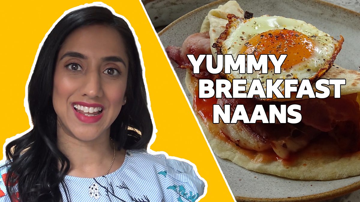 A naan breakfast recipe from Renu. All you need to do is add bacon, sausage and egg and you've got the breakfast of champions!