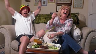 Tri thîm sy'n cystadlu yn erbyn ei gilydd o'u cartrefi clyd mewn pump rownd amrywiol. P...