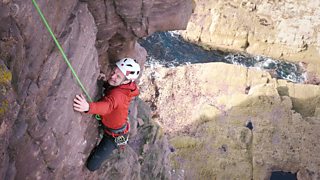 Red's companions guide him up Am Buachaille but the climb is not straightforward.