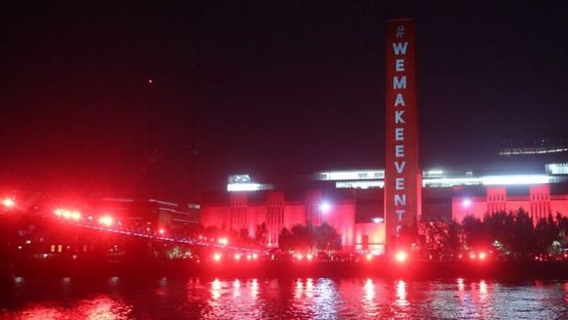 (Image: the Tate Modern and Millennium Bridge both lit up in red to raise awareness of the crisis facing the UK’s events industry. Credit: PA Wire)