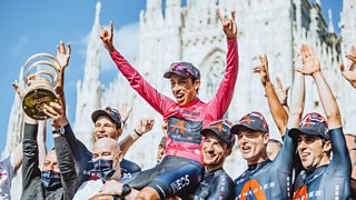 Uchafbwyntiau'r diwrnod o'r Giro d'Italia. The day's highlights from the Giro d'Italia.