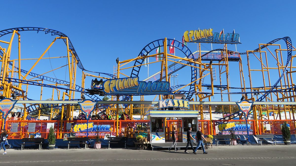 Reporter Jon Chubb rides the 'Spinning Racer' at Fantasy Island!