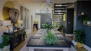 Y tro hwn: ymweliad â ffermdy sydd wedi cael estyniad gan gyfuno'r hen a'r newydd, ty F...