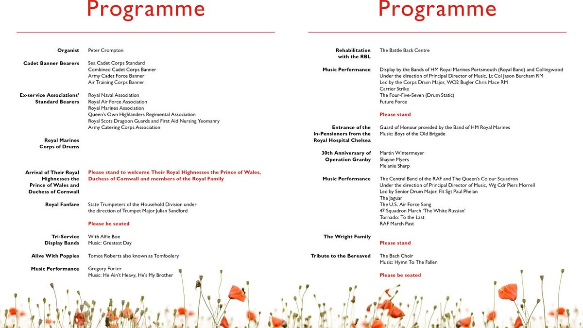 The order of events for this year's Festival of Remembrance.