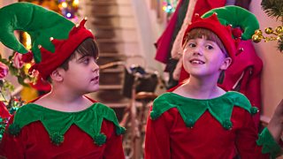 Dodge and Evie are working through their Christmas to-do list in the CBeebies House.