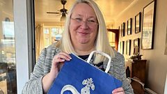 Babs speaks to the 'Bag Lady' who has collected over 10,000 bags
