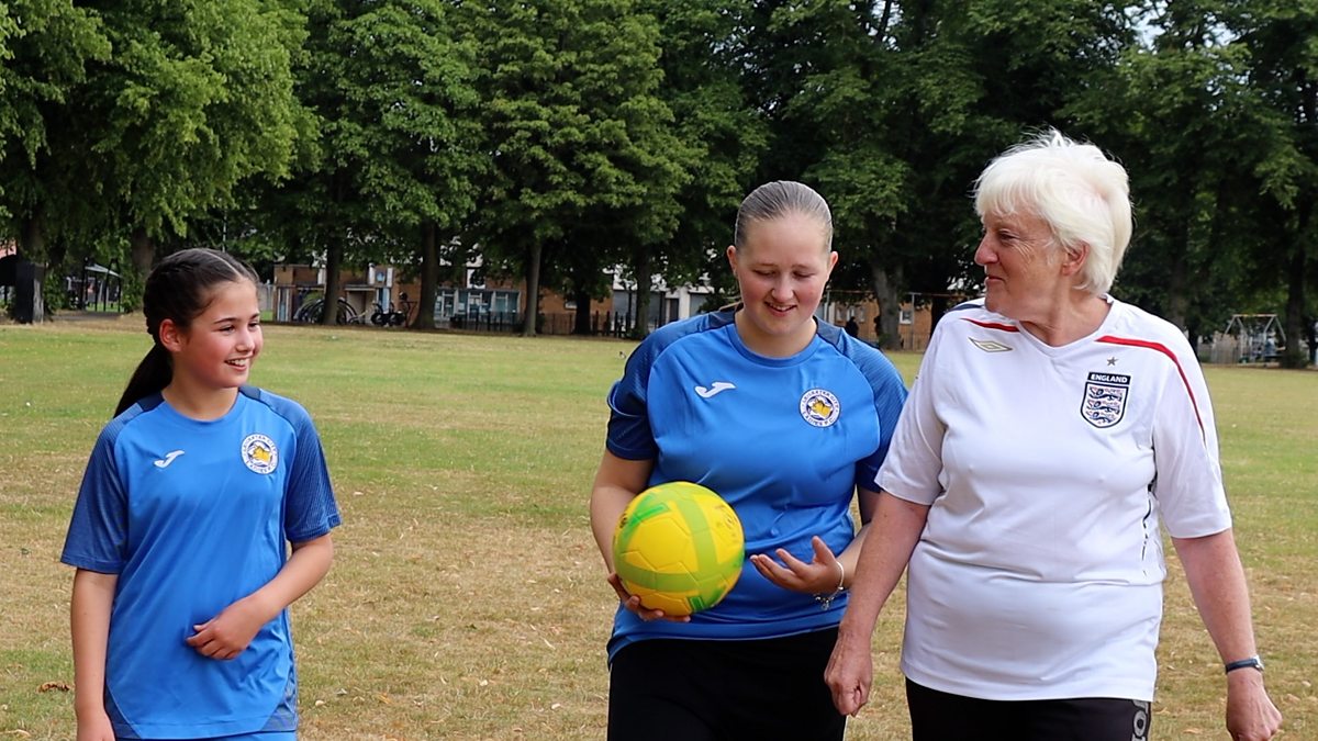 David Pittam met up with three generations of female footballers for a kick about on Victoria Park.