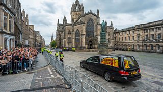Follow the Queen's coffin as it travels from Balmoral to Edinburgh (no commentary).