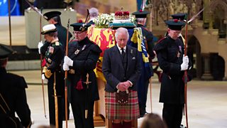 Queen's children walk her coffin from Holyrood Palace to St Giles Cathedral.