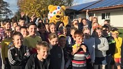 There's chaos as Pudsey arrives at Menheniot Primary School
