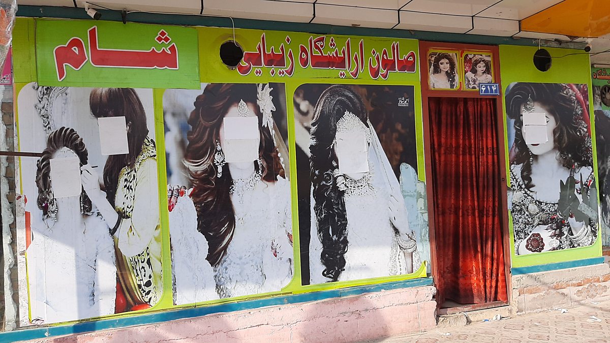 (Image: Salon in Jalalabad, Afghanistan in 2021 after the Taliban regained control, Credit: Anadolou Agency/Getty Images)