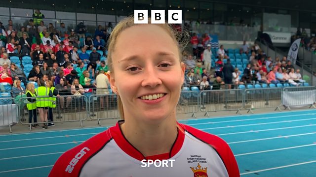 Shadine reacts to winning her third Island Games gold medal and a new games record.