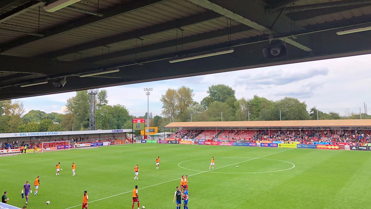 Charlie Jolley reacts to Tranmere's 3-2 defeat at Crawley Town