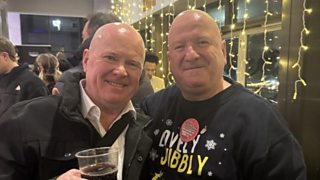 Listener Jason meets his lookalike Steve McFadden during a St Albans pantomime outing.