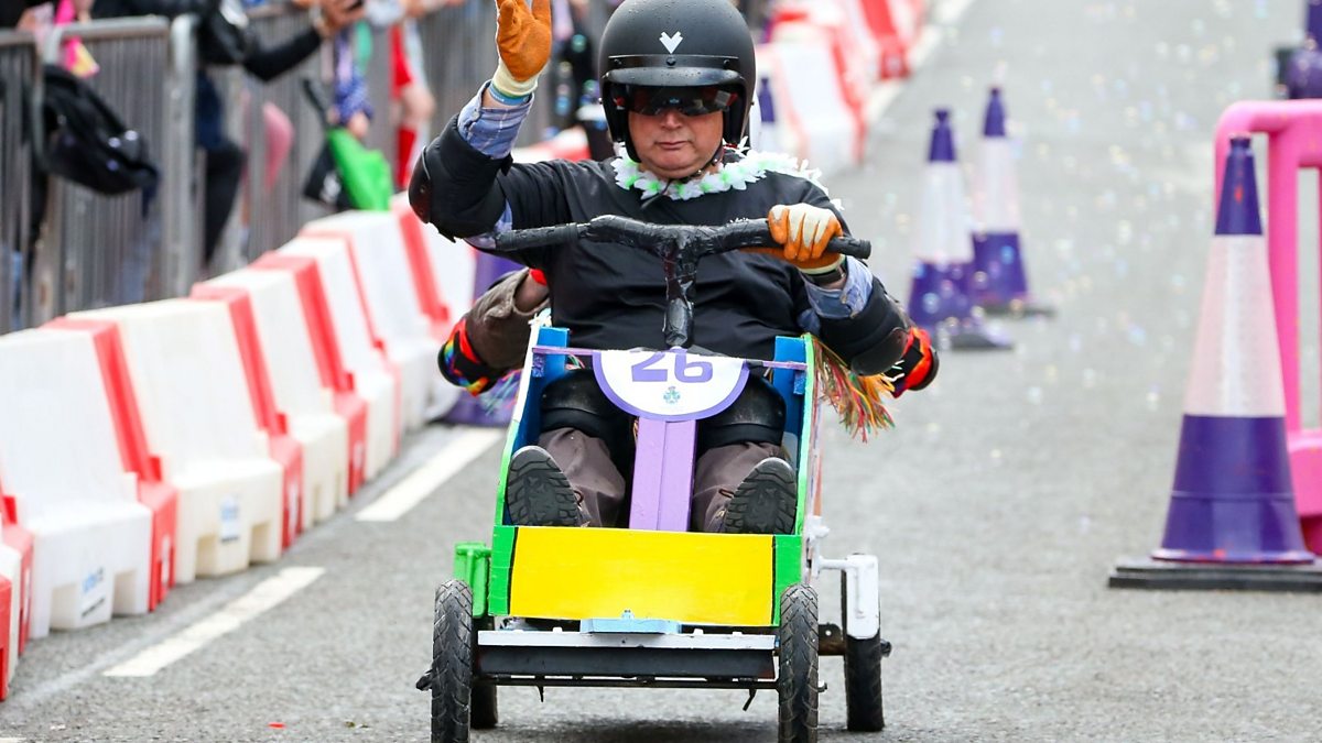 Danny Scoffin from Krazy Races tells Scott where the Lincoln Soapbox Derby will be held.
