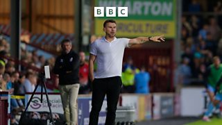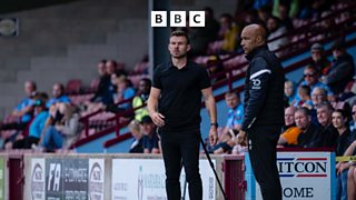 Ollie Turner talking to Andy Butler after Scunthorpe draw 3-3 at home to Solihull Moors.