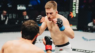 Darllediad o ffeit yr ymladdwr MMA Brett Johns yn fyw o'r Sanford Pentagon, Sioux Falls...