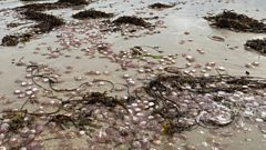 Thousands of jellyfish have washed up on Cornwall's beaches