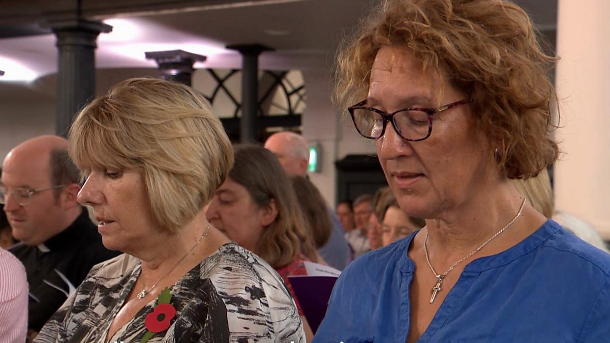 The congregation at St Martin-In-The-Fields sing, 'For The Healing Of The Nations' on Remembrance Sunday.