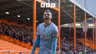 Aden Baldwin reacts after scoring his first Bradford City goal in win at Blackpool.