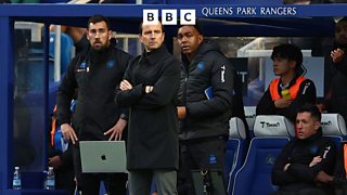 QPR boss Julien Stéphan talks to BBC's Emma Jones after the draw at Portsmouth