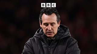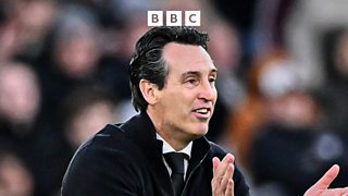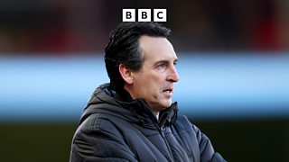 Villa manager Unai Emery reacts following home win against Nottingham Forest.