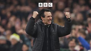 Aston Villa manager Unai Emery reacts following home victory over Manchester United.