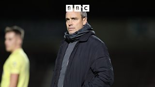 Wycombe Head Coach Michael Duff reacts after Wycombe lose 4-0 away to Exeter.