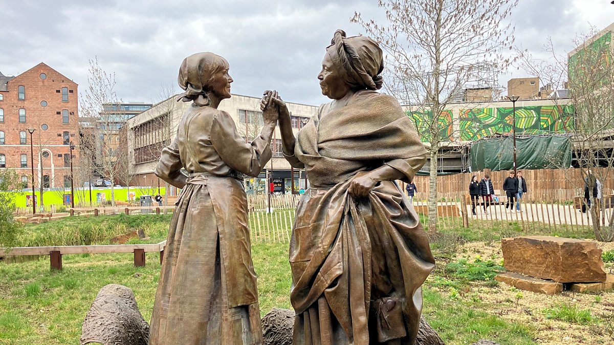 Hear the story behind a bronze sculpture of two women, installed in Nottingham