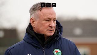 Blackburn Boss Michael O'Neill on the celebrations after beating Preston one - nil.