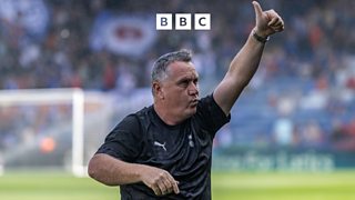 Micky Mellon reacts to a 2-0 win at home to Bristol Rovers.