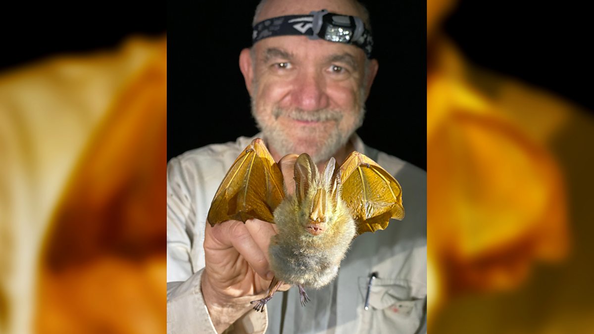 Image: Rodrigo Medellin holding a bat (Credit: Paul Webala)