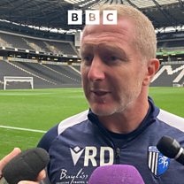 Our reporter Ben Watts speaks to Gillingham's assistant manager Richard Dobson after their 3-2 defeat against Milton Keynes Dons.