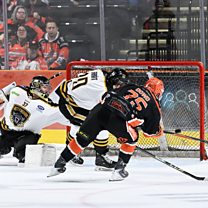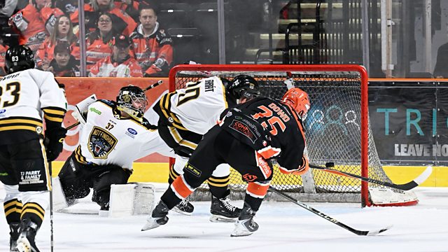 Sheffield Steelers captain Robert Dowd speaking to Peter Spencer, after their 4-2 defeat to Nottingham in the Challenge Cup..