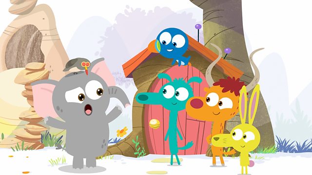 Mae'r Whws yn darganfod bod y Pigwr Trogod Pipgoch yn helpu Eliffant coslyd trwy bigo pryfed oddi arno. The Woohoos discover that the Oxpecker serves an important service to Elephants.