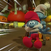 Mae Blodyn a Peniog yn cael eu cludo i fydysawd arall lle ma'r Smyrffs yn llwyd a blin. Blossom and Brainy find themselves transported to another universe where the Smurfs are grey and mean.