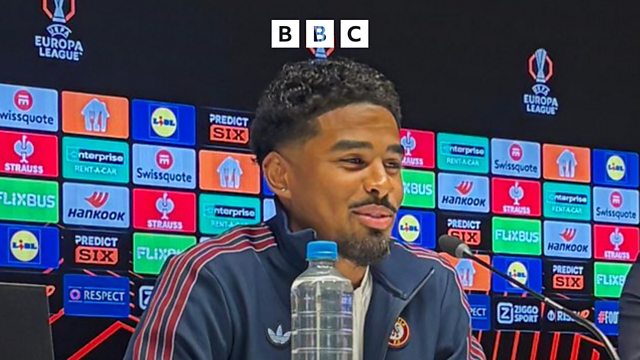 Villa defender Ian Maatsen talks to the media ahead of their Europa League game.