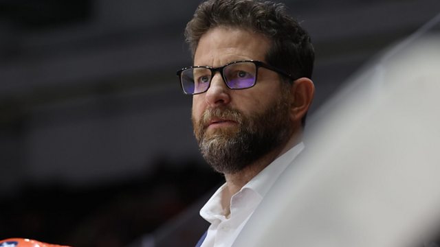 Sheffield Steelers head coach Aaron Fox speaking to Peter Spencer, after 4-3 win over Guildford Flames.