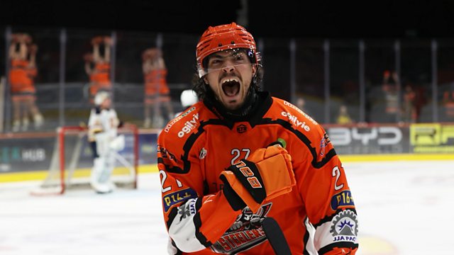 Sheffield Steelers forward Cole Shudra speaking to Peter Spencer, after their 4-3 win over Guildford Flames.