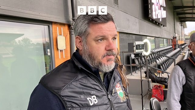 Manager Brennan speaks to BBC's Harry Low after the 2-2 draw at home to Milton Keynes