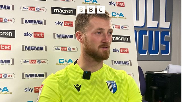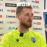 Gillingham goalkeeper Jake Turner speaks to our reporter Ben Watts after Crawley Town came from behind twice to earn a 2-2 draw at Priestfield.
