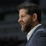Sheffield Steelers head coach Aaron Fox speaking to Peter Spencer, after their 2-1 win over Fife Flyers.