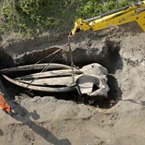 Unearthing the huge head of a whale