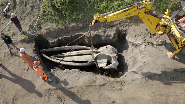 A whale's head buried in Cornwall has been unearthed so it can go on public display. Hear more in the new podcast series "The Whale, Secrets of a Stranding" on BBC Sounds