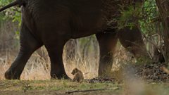 Hyena cubs play with the other animals visiting the sausage trees near their den.