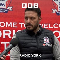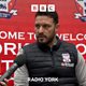 York City first-team coach Gary Elphick speaking to Peter Spencer, ahead of their trip to Brackley Town.