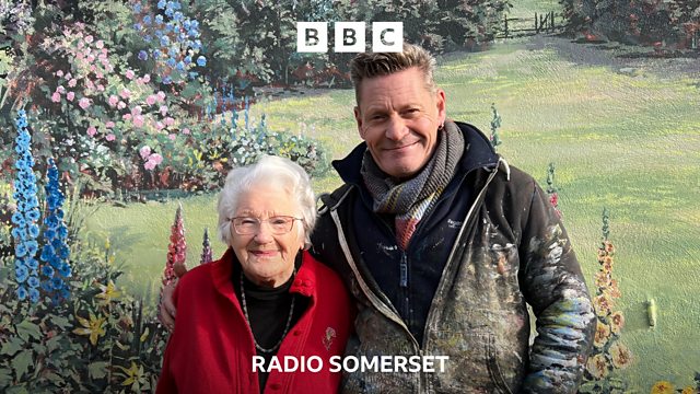 94-year-old Muriel Baker, from Meare near Glastonbury, had the front wall of her house transformed into a countryside garden scene by local artist Jon Minshull.
