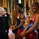 Photo: Britain's Queen Camilla (L) meets with Gladiator Nitro aka Harry Aikines-Aryeetey during a reception to celebrate the final of the BBC's creative writing competition at Buckingham Palace on February 26, 2025 (CREDIT: Justin Tallis - WPA Pool/Getty Images)