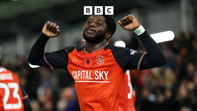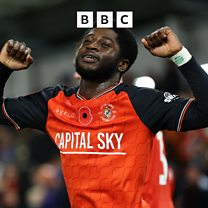 Luton's Gideon Kodua reacts after scoring a late equaliser against Bolton Wanderers.